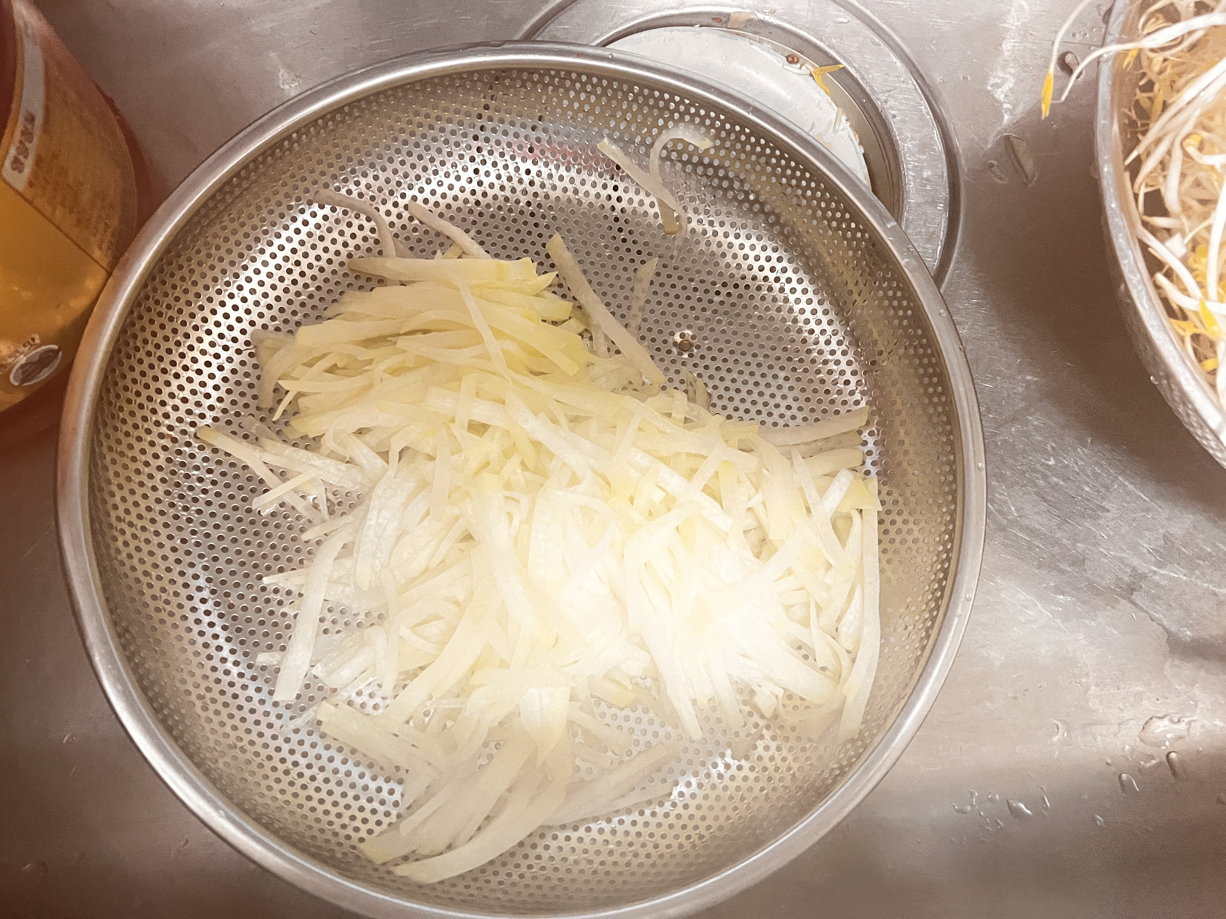 채썰어서 삶았습니다. 삶은 무채도 큰 그릇에 넣어줍니다.