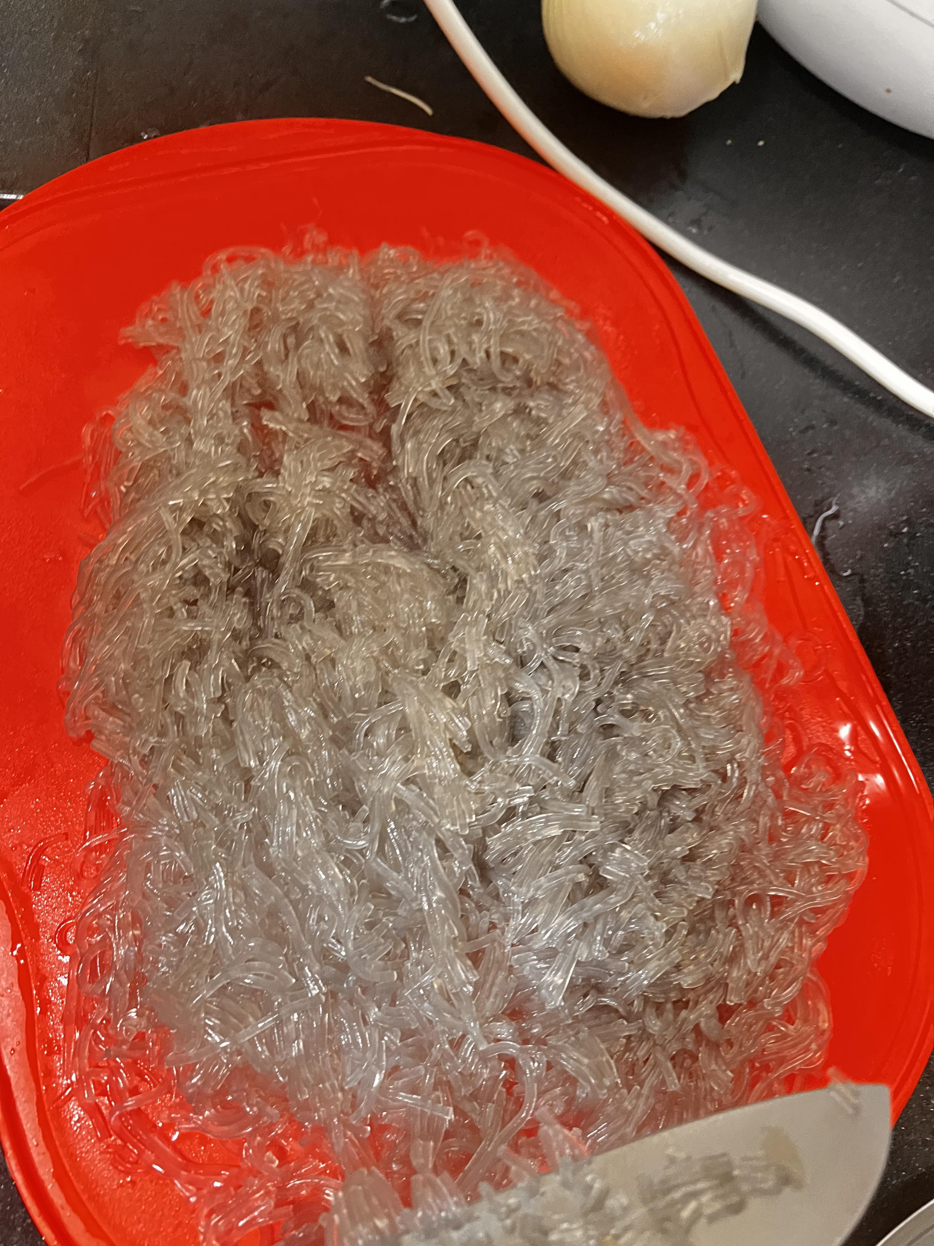당면은 따뜻한물에 불렸다가 삶아서 잘게 다져줍니다.