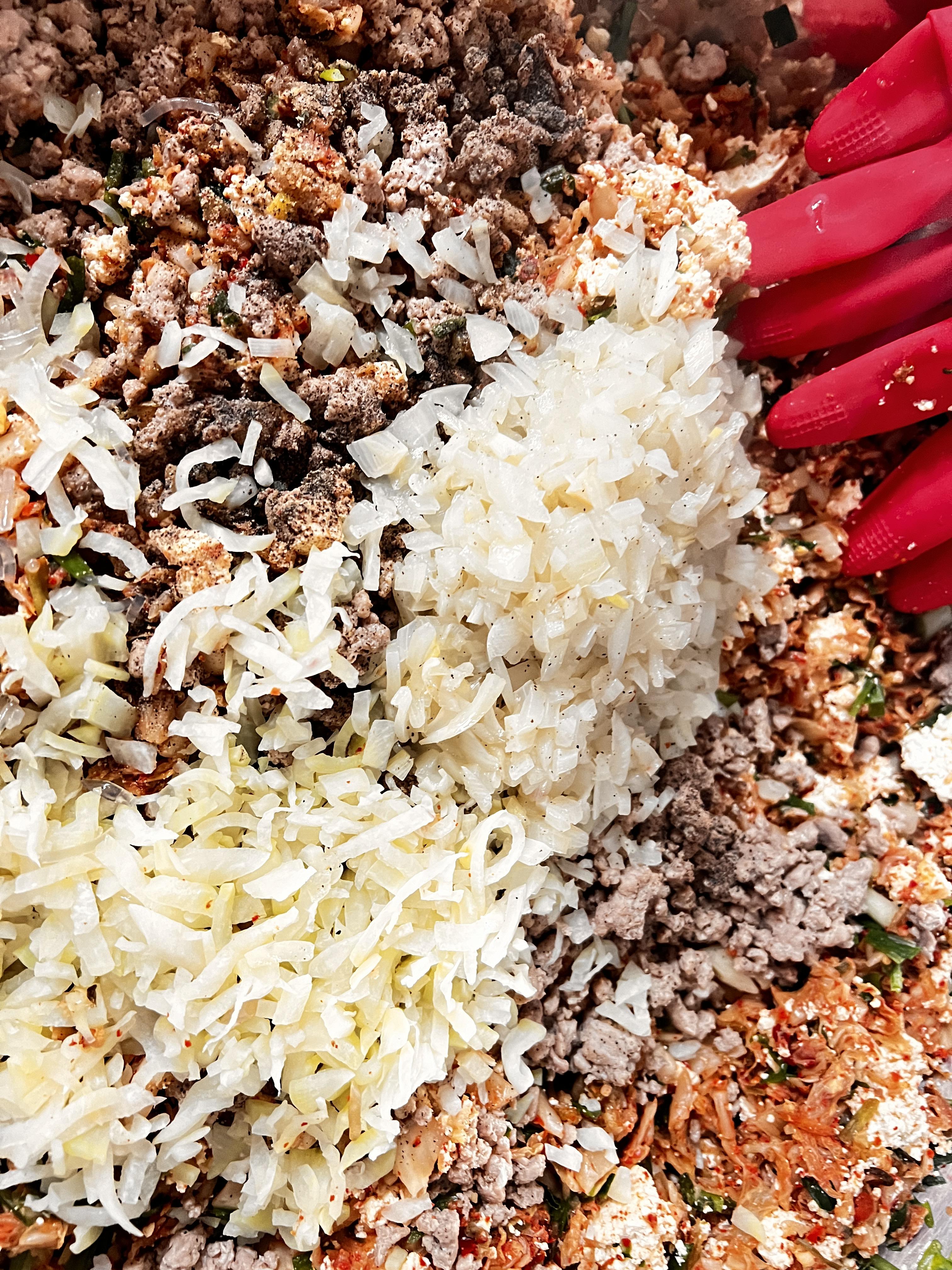 이렇게 완성되었습니다. 이제 만두피에 싸서 찜솥에 올려서 맛있게